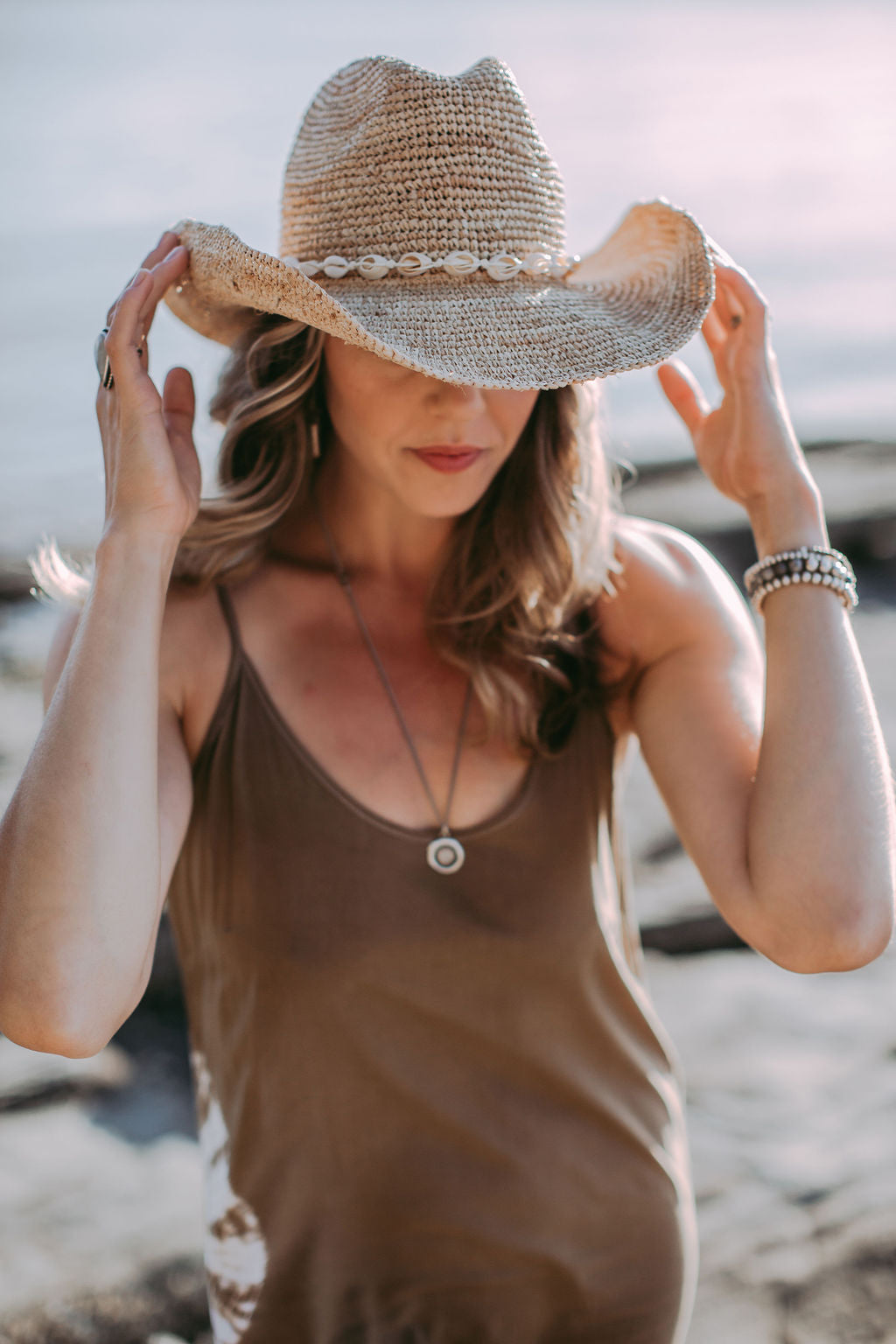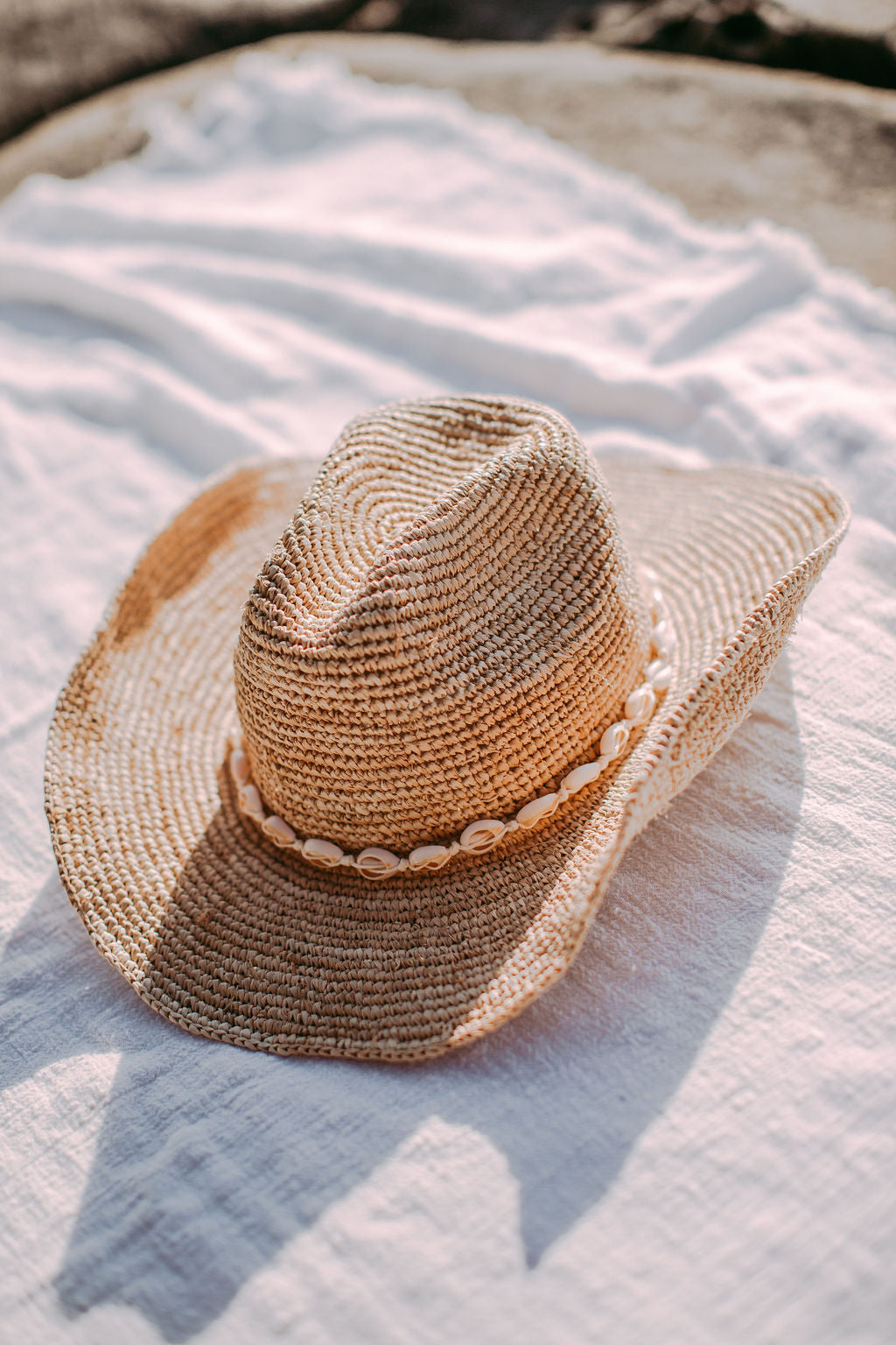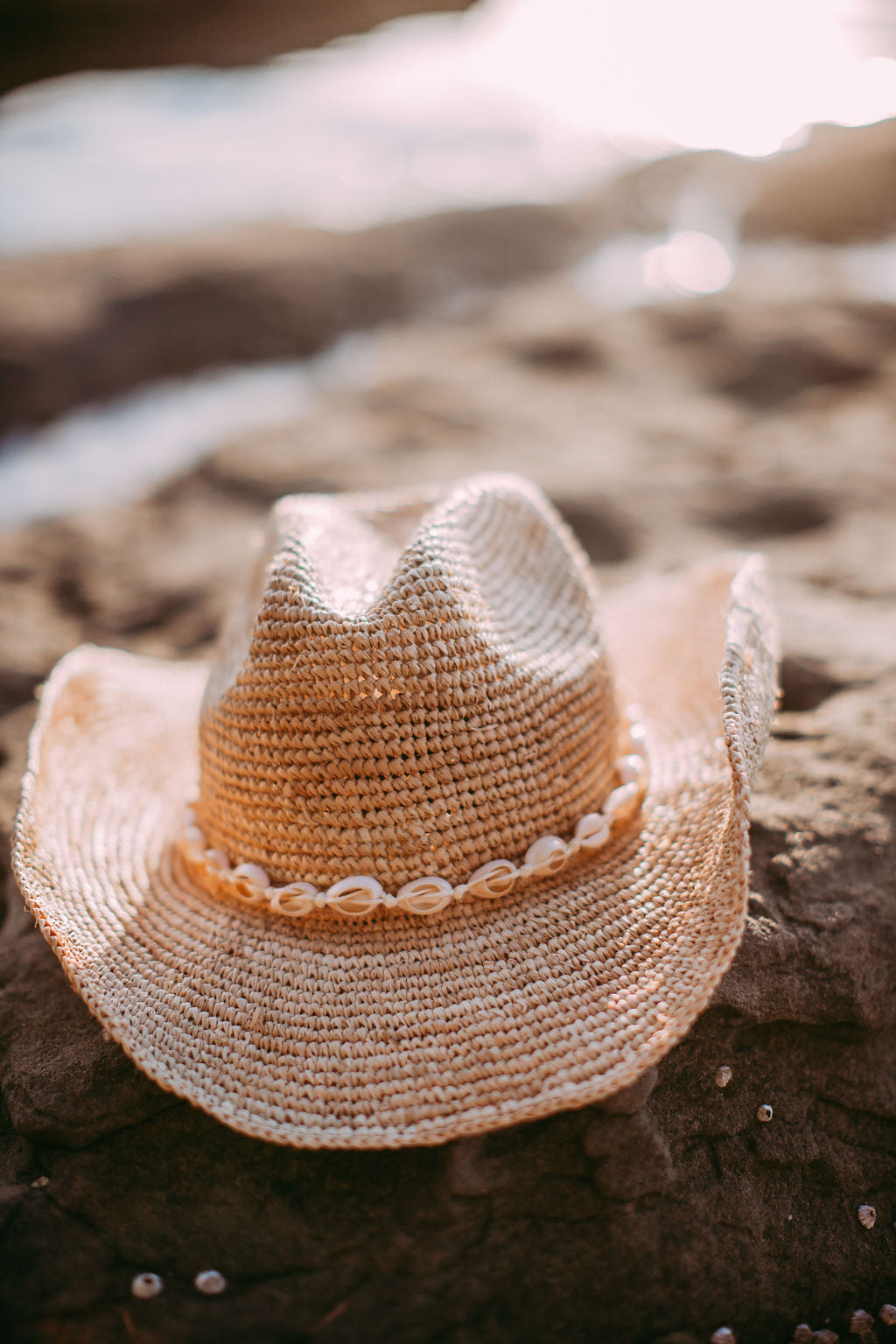 Callie is our first limited edition western style hat, crafted from 100% woven raffia straw. A soft structured pinched crown and flexible wire brim, allows her to pack like a dream. Simply reshape the brim to your liking! Paired perfectly with a hand tied removable shell band that can adjust to any hat. She’s comfortable, breezy and a timeless straw hat staple.