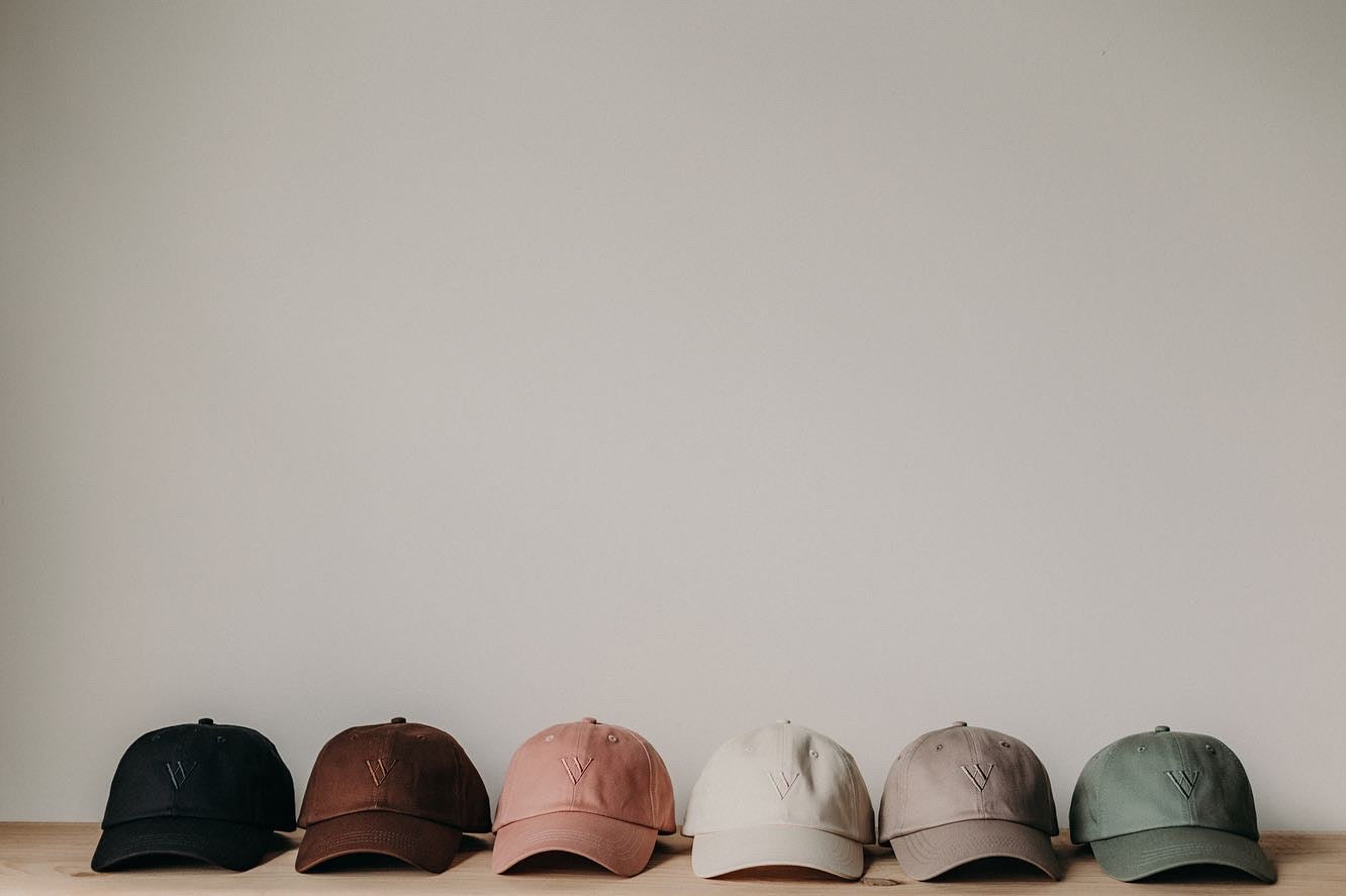 Made of quality Chino 100% Cotton Twill, Charlie is a relaxed vintage, six panel design with a slightly curved brim. She features an adjustable strap with a quality brass closure. Our minimalistic signature logo is embroidered on the front with matching tonal thread. Available in six colours: noir, chocolate, dusty rose, cream, dune + sage.