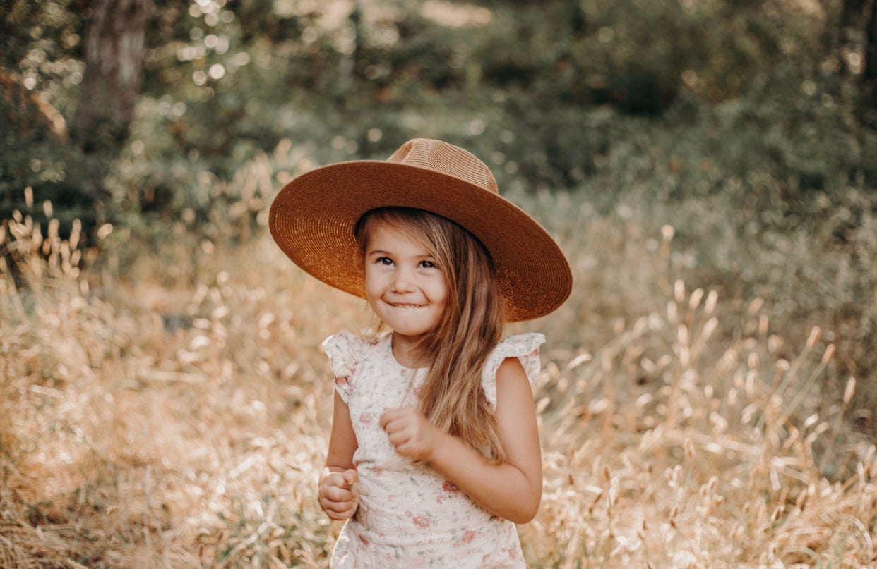 Maisy is now available in mini size! Our first child size straw hat. This hat fits approximate age 3-5 years. Maisy is crafted from 100% Braided Paper Straw. A rancher style that has the largest brim from the straw hat fleet - offering extra sun coverage. Both brim and crown are stiff, yet flexible. Finished with our signature WV logo. Maisy is vegan friendly.