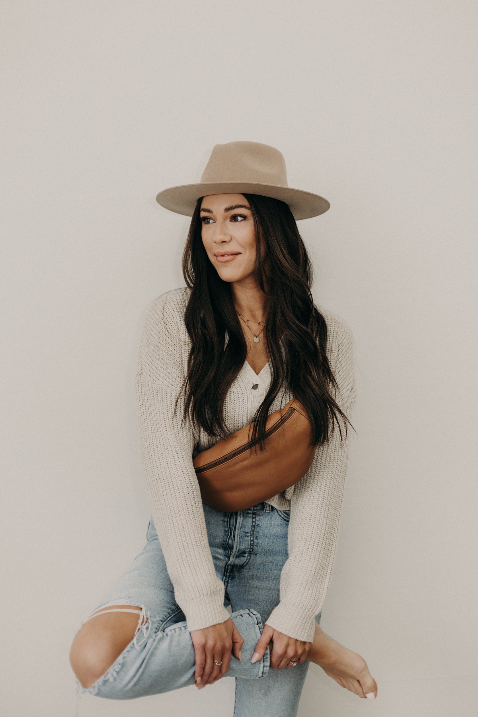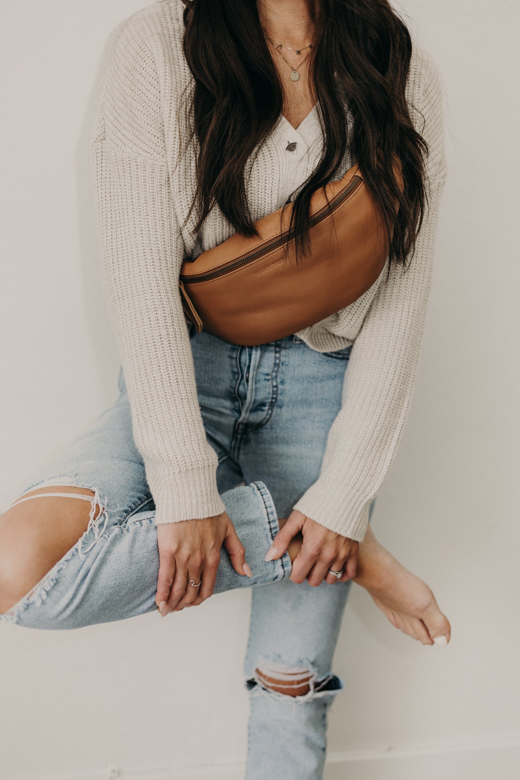 Indie is here! You've been asking for a larger leather sling and it’s finally here! Crafted in small batches in Bali Indonesia, this stunning new design holds more than our Ella Sling. Genuine leather, sleek and minimalistic. Quite possibly the most stylish Fanny Pack ever! The main belt features a brass buckle release for easy on and off. Belt can be adjusted for wearing around the hip, across the body and over the shoulder. Available in Noir, Toffee, Bone, Whiskey, Olive and Dark Brown.