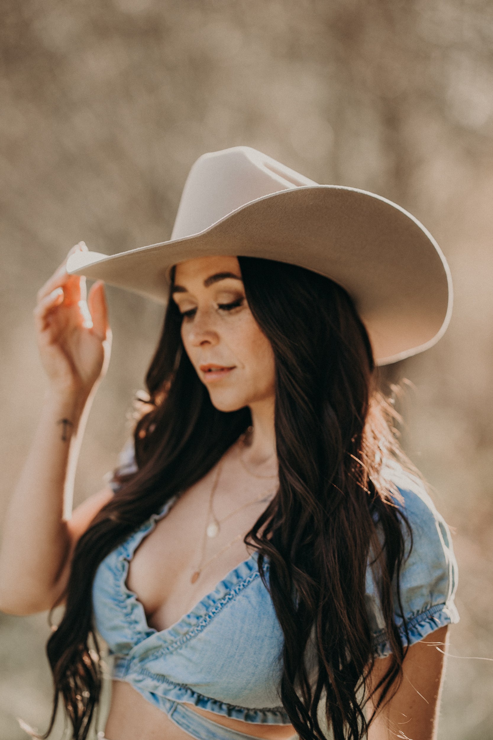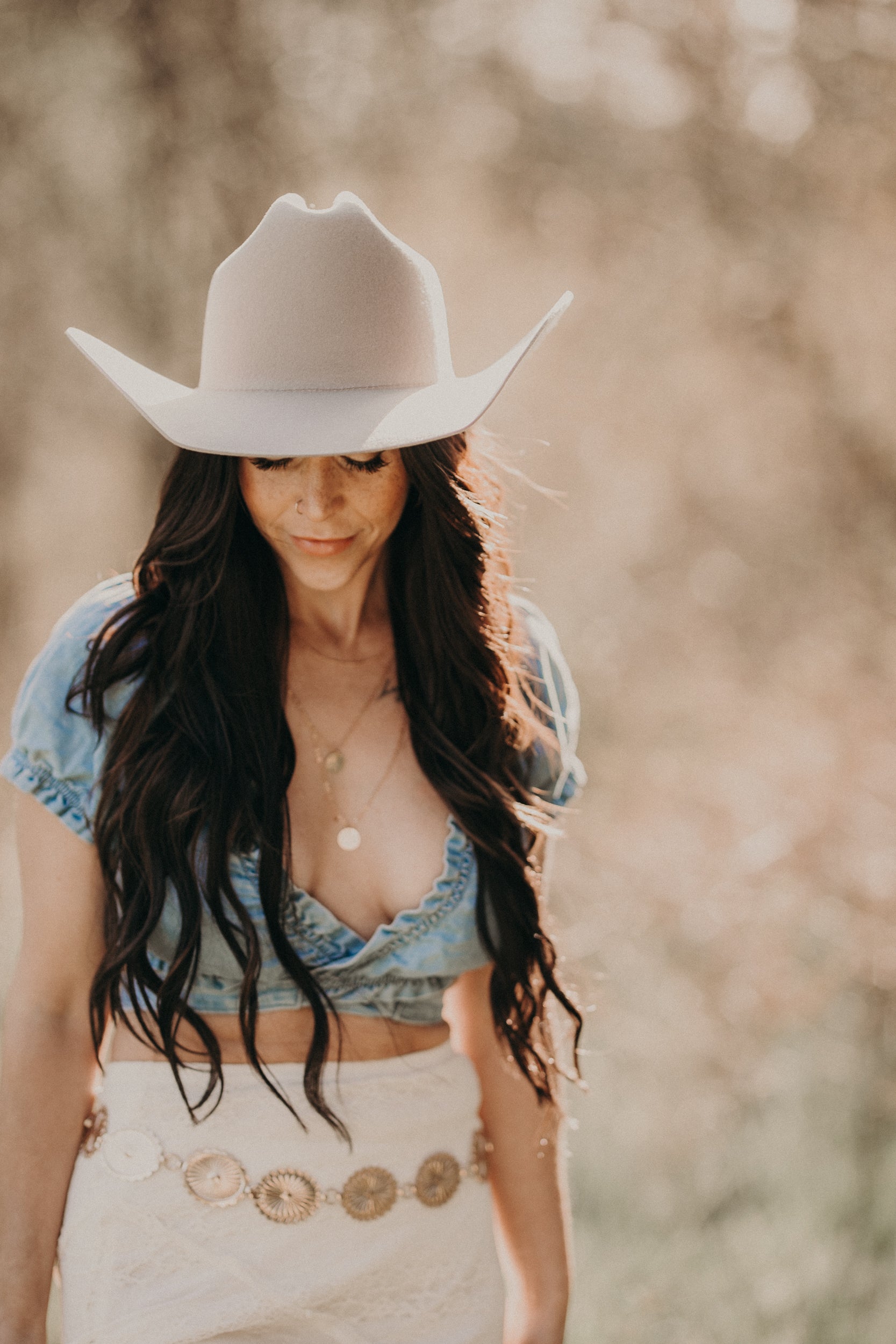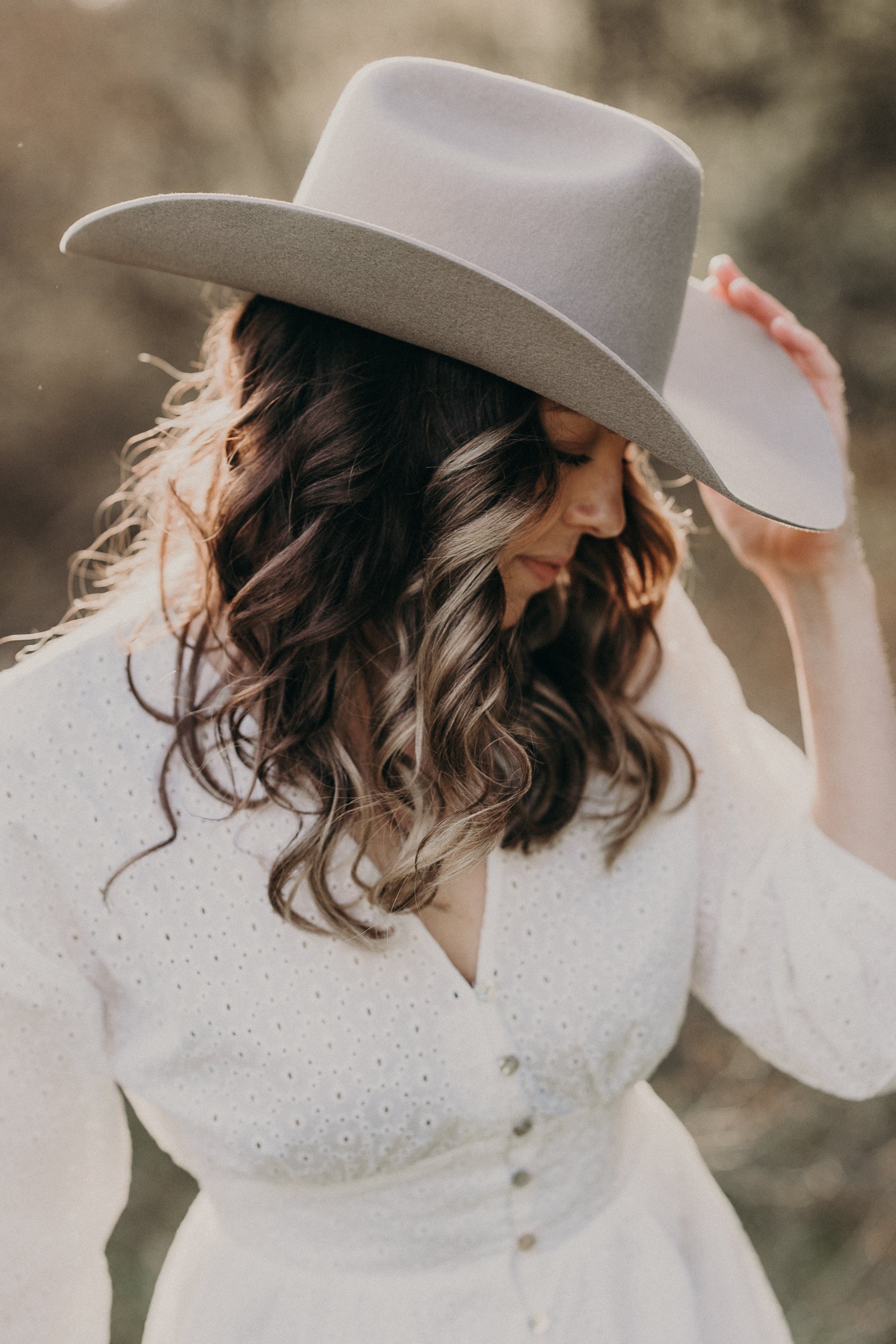 Laney is a complete showstopper. Making all your western hat dreams come true. Crafted from 100% Australian wool. A classic tall cattleman’s crown, with a structured wide brim. Cream brim is raw edge. Featuring a new cushioned dry-lex sweatband for longer wear comfort. Available in two sizes and also in Cloud colourway.