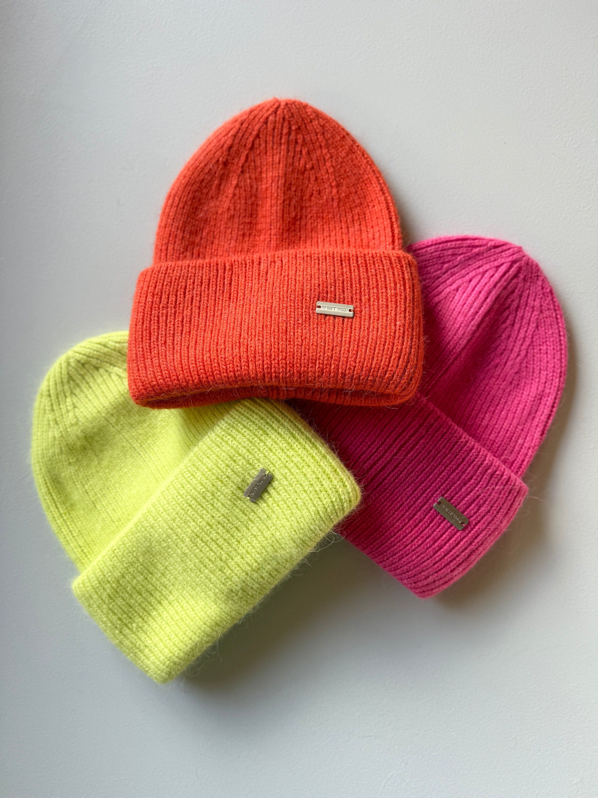 Hello LOLA! Our newest Angora wool blend beanie to join the fleet. She's chic, cozy and comes in 10 delicious colours for fall, winter and into spring! A single layer beanie with a thick double upturn cuff to keep you ultra warm this season. Versatile design can be rocked higher up on the forehead or pulled down. Finished with our signature metal logo. Our stunning neutral collection of Frankie Cashmere Blend Beanies can be found here.