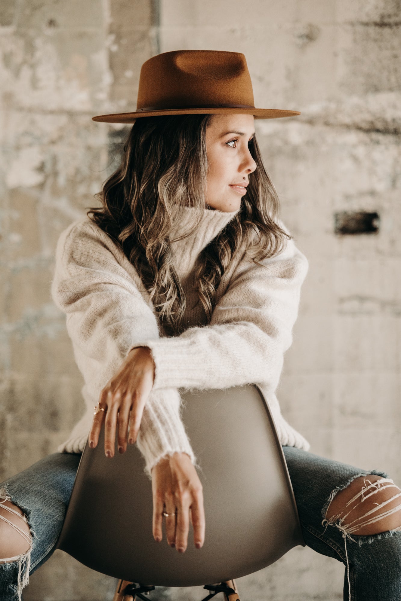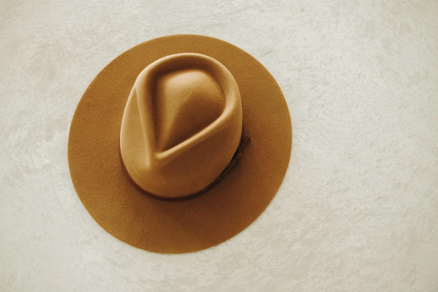 River is our newest style to the fleet! The most perfect everyday fedora. A beautiful teardrop crown with a shorter stiff brim. Finished with a double wrapped genuine leather band that is loop knotted on the left side. Also available in Cream + Everest.