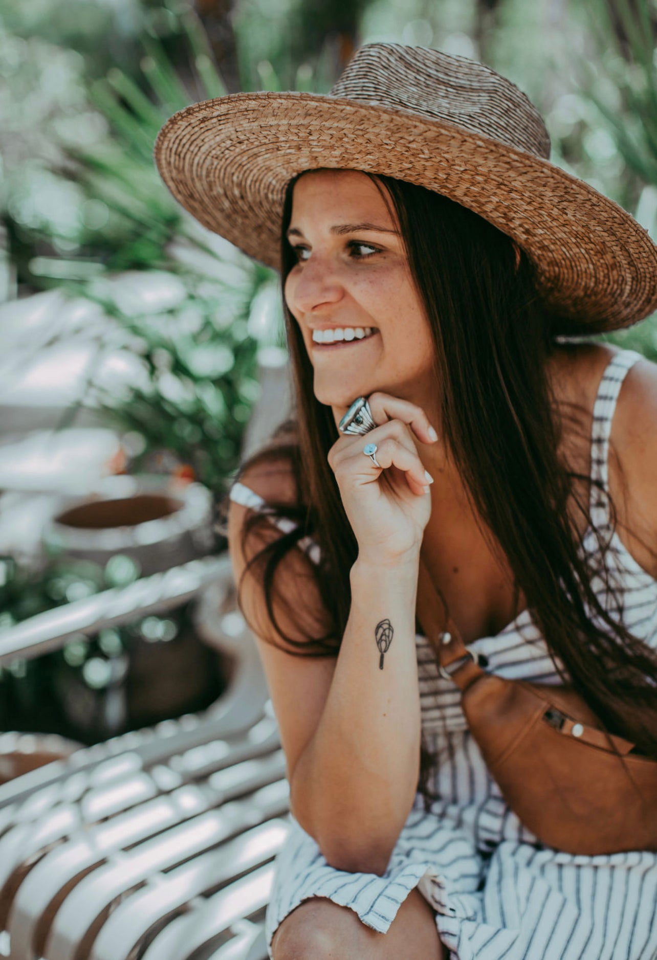 Sadie because we love a good rancher! Crafted from 100% Palm Straw, Sadie has a bold tall crown with a wide brim that makes for fantastic sun coverage. Sadie is completely structured, offering a stiff and sturdy exceptionally straight brim. Finished with our signature WV.
